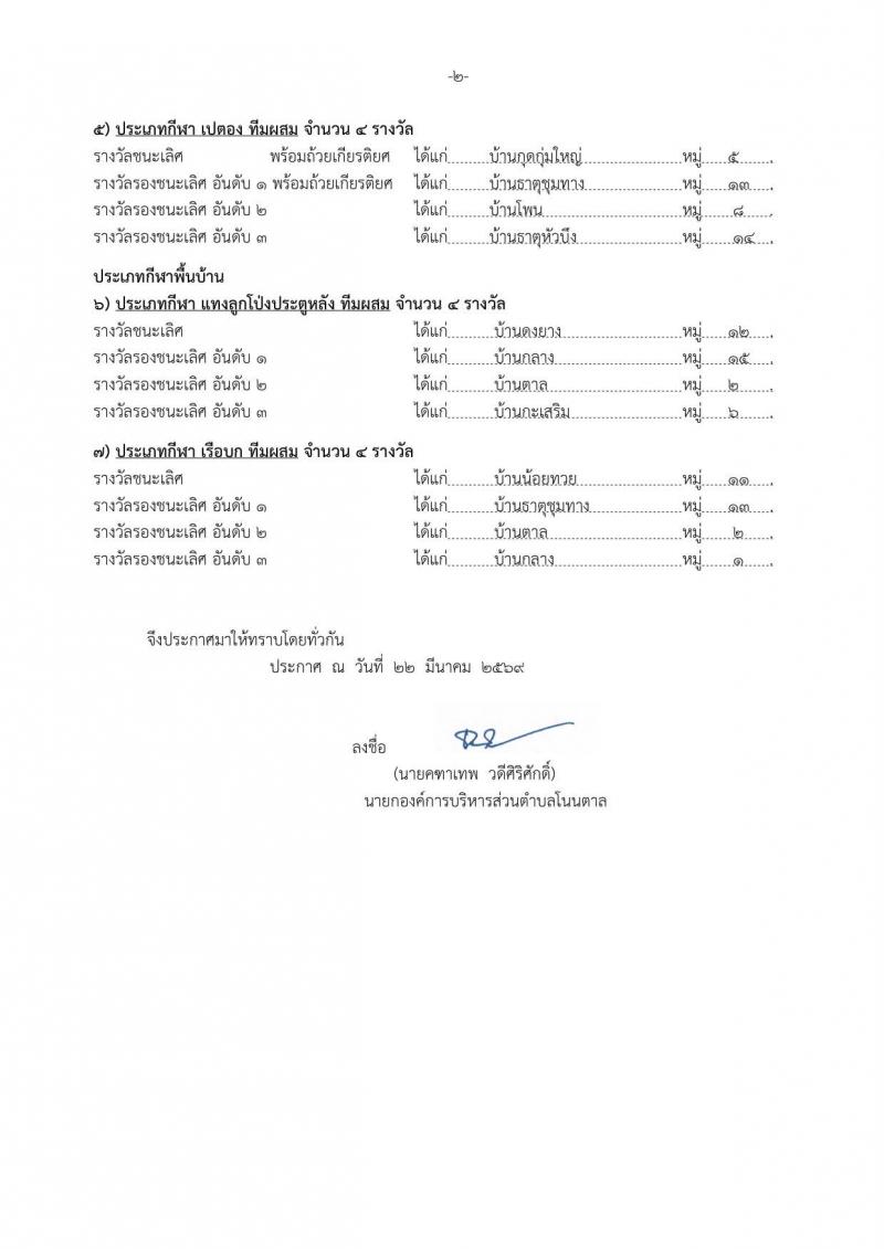 description สรุปผลการแข่งขันกีฬาประชาชนต้านยาเสพติด "โนนตาลเกมส์" ครั้งที่ 26 person admin