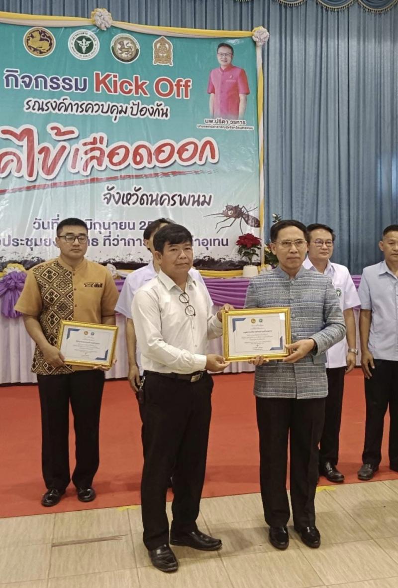 รายละเอียด : 23 มิถุนายน 2566 เวลา 08.30 น. นายวันชัย จันทร์พร ผวจ.นครพนม เป็นประธานในพิธีเปิดกิจกรรม Kick off รณรงค์การป้องกันและควบคุมโรคไข้เลือดออก และ นายคฑาเทพ วดีศิริศักดิ์ นายก อบต.โนนตาล ได้รับเกียรติบัตร จาก ท่าน ผวจ.นครพนม ในการสนับสนุนกิจกรรม Kick off รณรงค์การป้องกันและควบคุมโรคไข้เลือดออก โดยอำเภอท่าอุเทนเป็นตัวแทนของจังหวัดในการจัดกิจกรรม ณ หอประชุมยงใจยุทธ อำเภอท่าอุเทน