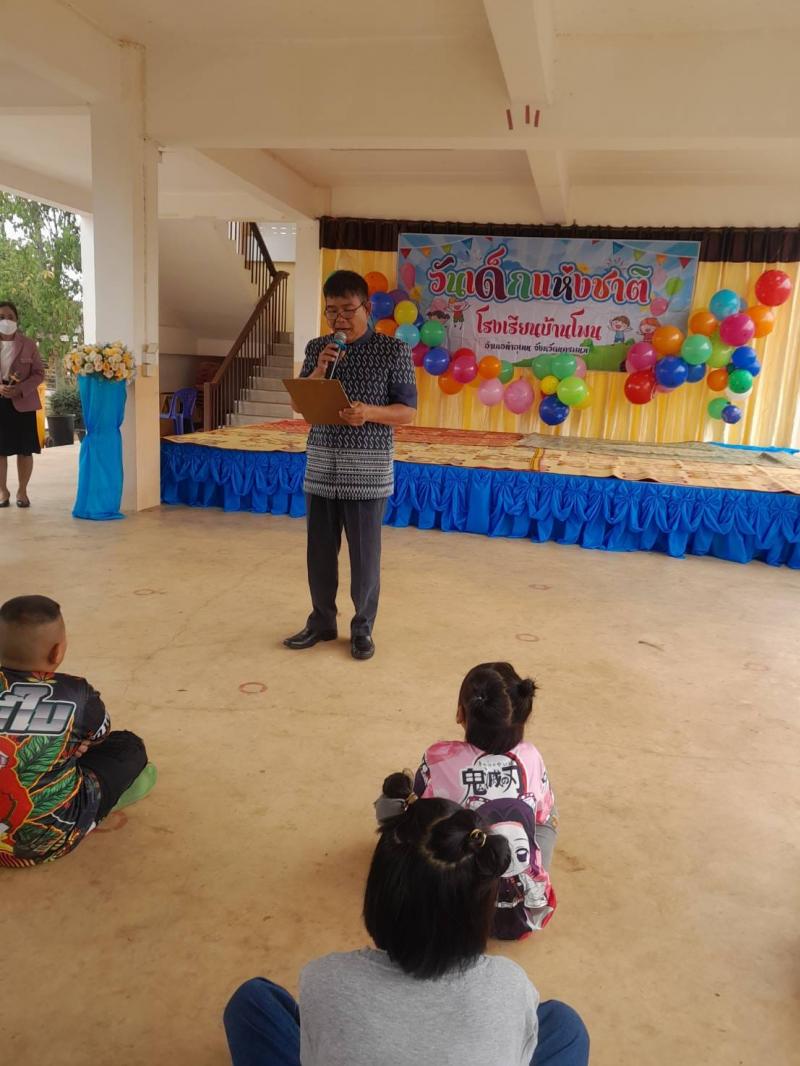 นายคฑาเทพ วดีศิริศักดิ์ นายก อบต.โนนตาล พร้อมด้วย ร.ต.ท.สงวนชัย ภะวะ ประธานสภา มอบของสนับสนุนกิจกรรมวันเด็กโรงเรียนบ้านโพน