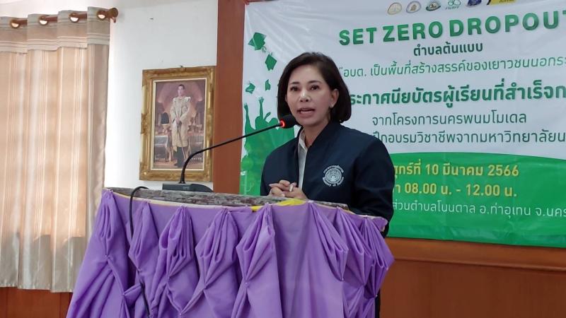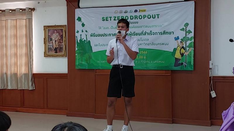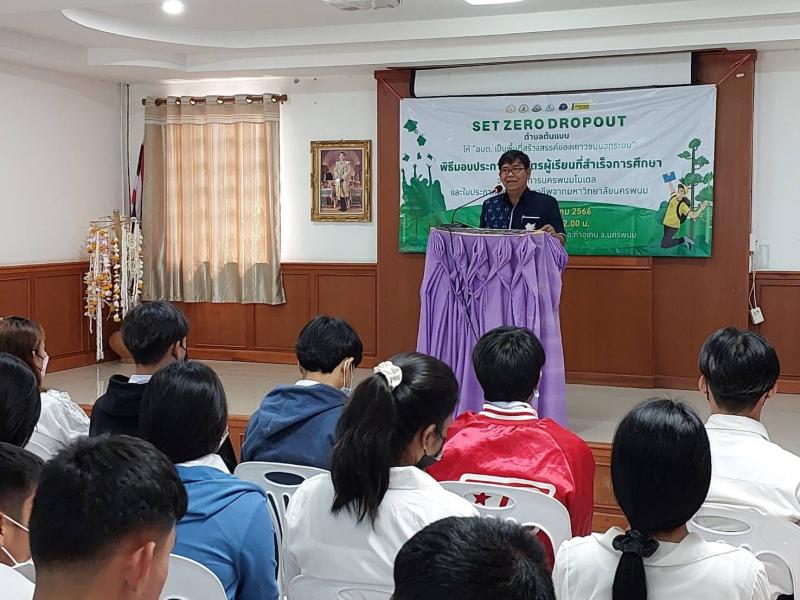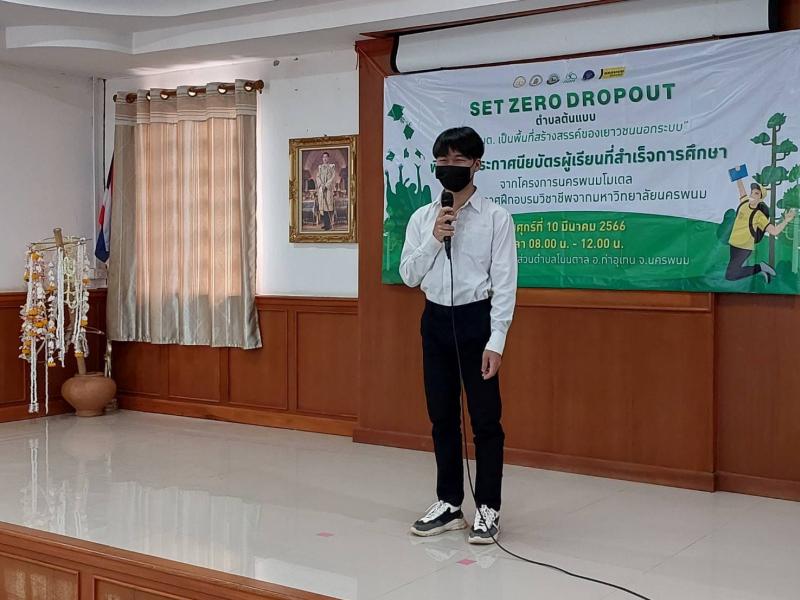 รายละเอียด : 10 มีนาคม 2566 เวลา 09.00 น. นาย วิจิตร กิจวิรัตน์ รองผู้ว่าราชการจังหวัดนครพนม เป็นประธานเปิดงานพิธีมอบประกาศนียบัตรผู้เรียนที่สำเร็จการศึกษา และใบประกาศฝึกอบรมวิชาชีพ ให้กับน้องๆเยาวชนนอกระบบ ที่หลุดออกจากระบบการศึกษา ให้สำเร็จการศึกษามัธยมศึกษาขั้นพื้นฐาน และในการนี้มีการให้คำปรึกษา สำหรับเด็กนอกระบบที่หลุดออกจากระบบการศึกษาไม่จบม. 3 หรือม. 6 แนะแนวเรียนต่อในรูปแบบการศึกษาทางเลือกผ่านนวัตกรรมโรงเรียนมือถือ เรียนทุกที่ทุกเวลาผ่านระบบออนไลน์ สำหรับผู้ที่สนใจสามารถสมัครผ่านทาง facebook นครพนมโมเดล zero Dropout ซึ่งจัดโดยสำนักงานศึกษาธิการจังหวัดนครพนมร่วมกับภาคีเครือข่าย นครพนมโมเดล ได้แก่ องค์การบริหารส่วนตำบลหรือเทศบาลที่เข้าร่วมโครงการ หน่วยงานทางการศึกษาของสำนักปลัดกระทรวงศึกษาธิการ หน่วยงานท้องถิ่นจังหวัดนครพนมหน่วยงานของสถานพินิจและคุ้มครองเด็กและเยาวชนจังหวัดนครพนม สถานศึกษาศูนย์การเรียนและมหาวิทยาลัยนครพนม เพื่อเด็กนอกระบบการศึกษาเป็นการพัฒนาระบบสนับสนุนคุณภาพการเรียนรู้และคุณภาพชีวิตเด็กและเยาวชนในจังหวัดนครพนม