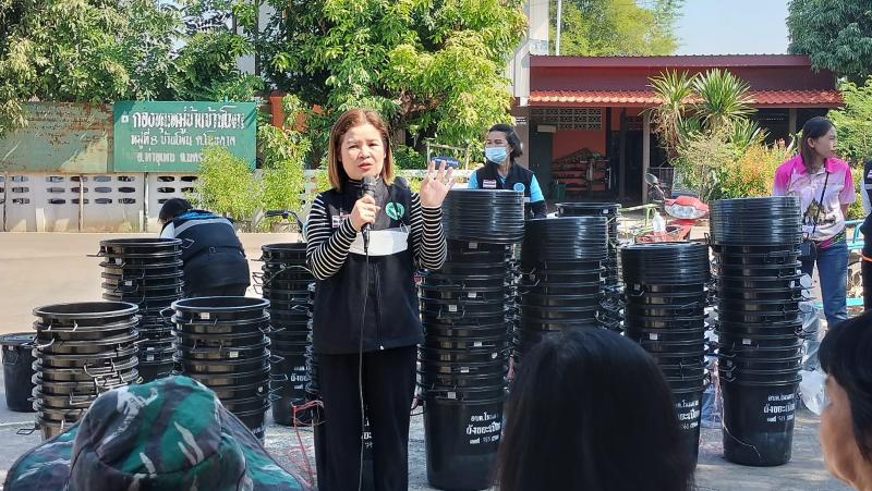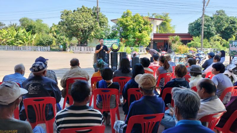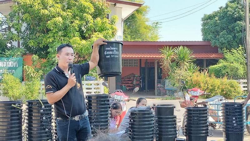 จัดอบรมให้ความรู้และสาธิตการติดตั้งถังขยะเปียก "ถังขยะลดโลกร้อน" ให้กับประชาชนในการบริหารจัดการขยะเปียกในครัวเรือน ในพื้นที่ หมู่ที่ 8 บ้านโพนณ ศาลาอีสานเขียว ตำบลโนนตาล