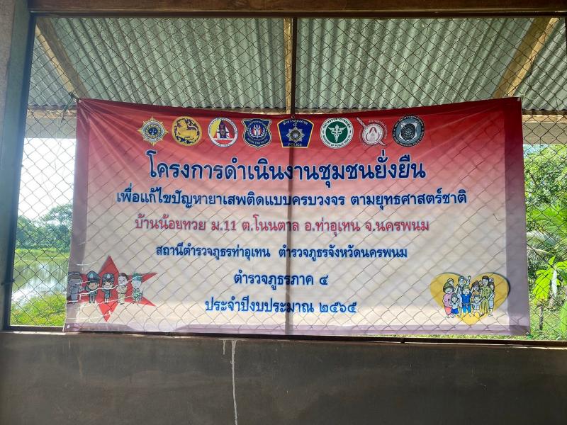 18 ก.ค.65 เวลา 15.00 น. สถานีตำรวจภูธรท่าอุเทน นำโดย พ.ต.อ.แสวง คนคล่อง ผกก.สภ.ท่าอุเทนตำรวจภูธรจังหวัดนครพนม ตำรวจภูธรภาค 4 ร่วมกับ อบต.โนนตาล และ บ้านน้อยทวย หมู่ที่ 11 นำโดย นายคฑาเทพ วดีศิริศักดิ์ นายก อบต.โนนตาล และนายอรรถพล สงฆ์อินทร์ ออกดำเนินโครงการดำเนินงานชุมชนยั่งยืน เพื่อแก้ไขปัญหายาเสพติดแบบครบวงจร บ้านน้อยทวย หมู่ที่ 11