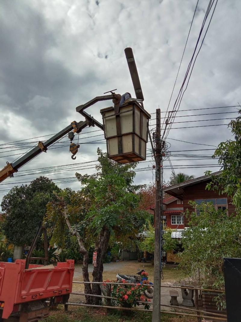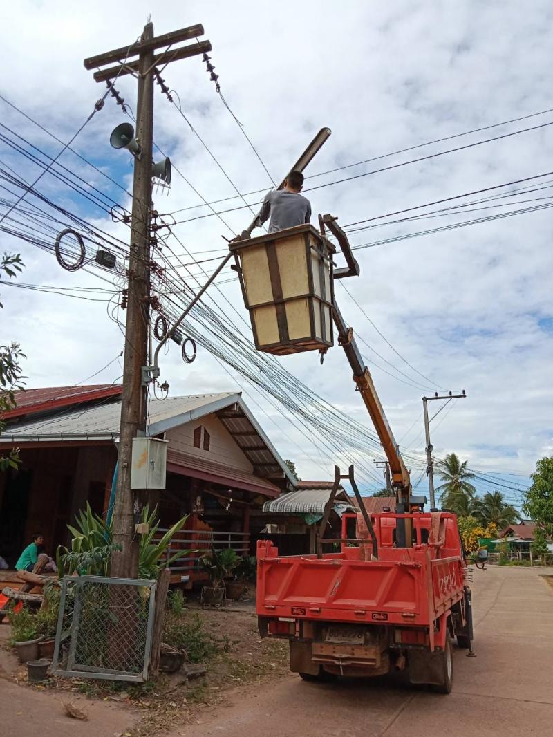 เจ้าหน้าที่กองช่างออกซ่อมแซมไฟฟ้าภายในหมู่บ้าน ตำบลโนนตาล จำนวน 2 จุด