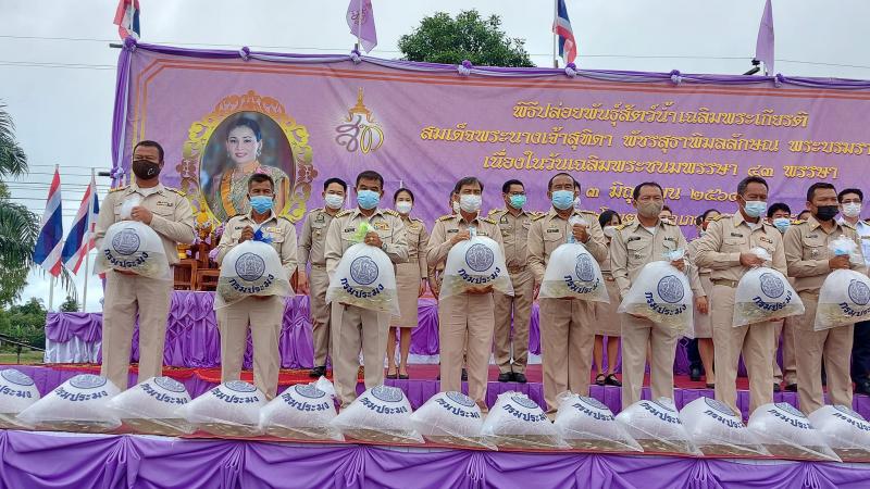 พิธีปล่อยพันธุ์สัตว์น้ำ เนื่องในวันเฉลิมพระเกียรติสมเด็จพระนางเจ้าสุทิดา พัชรสุธาพิมลลักษณ พระบรมราชินี (๓ มิถุนายน ๒๕๖๔)
