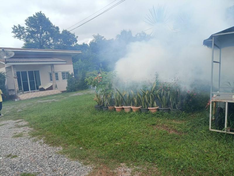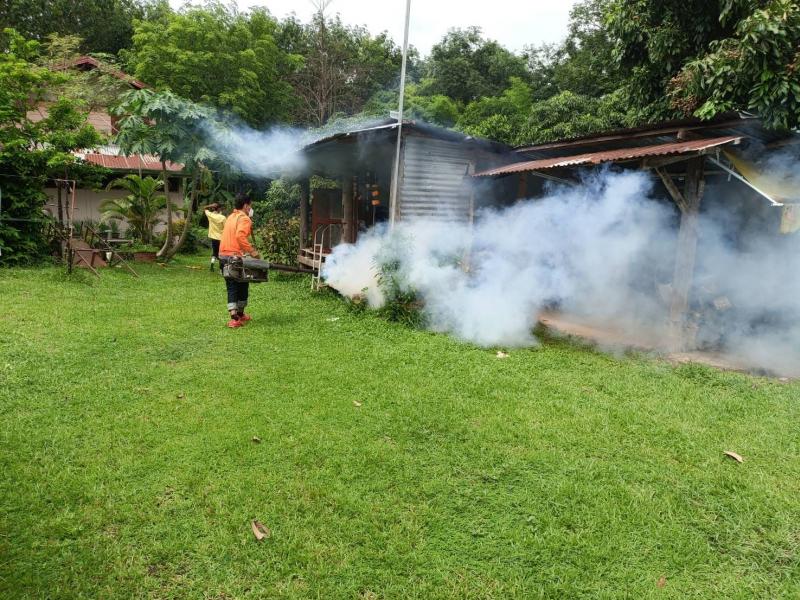 ออกพ่นหมอกควันเพื่อควบคุมโรคไข้เลือดออก เคสผู้ป่วย บ้านธาตุชุมทาง หมู่ที่ 13 ต.โนนตาล