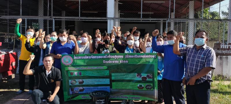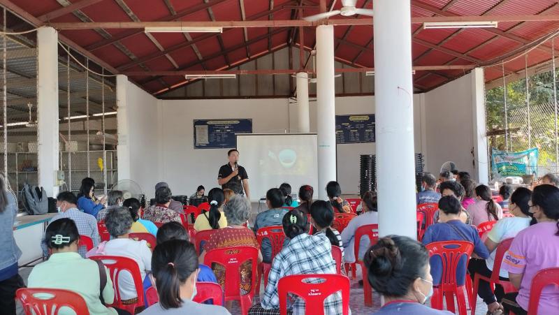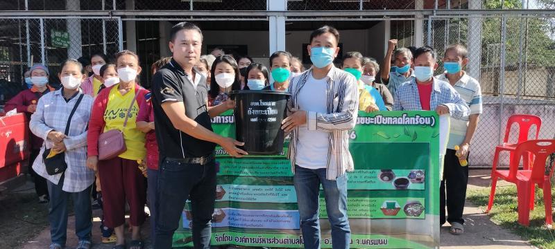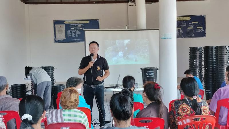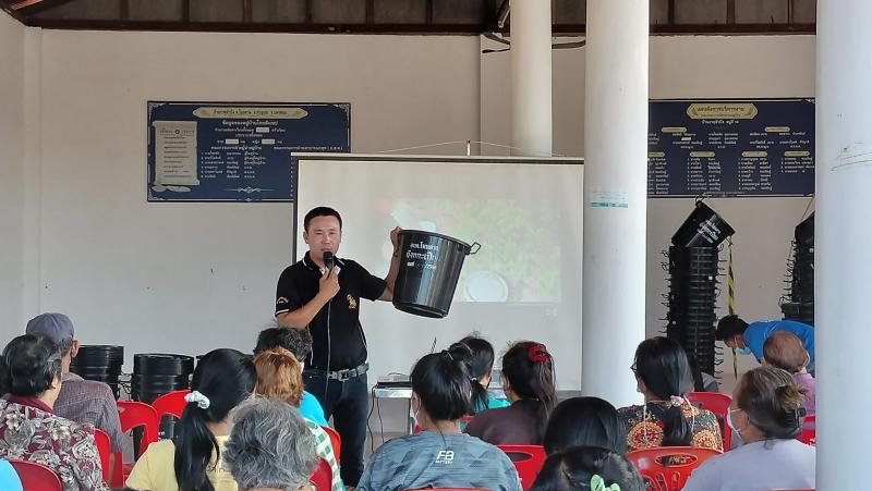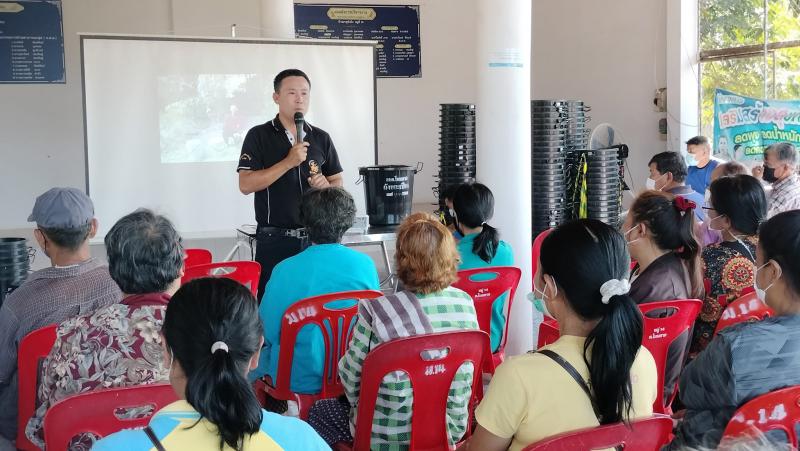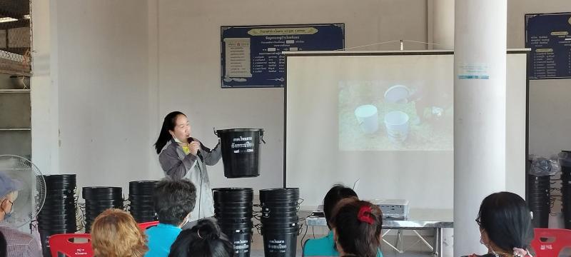 จัดอบรมให้ความรู้และสาธิตการติดตั้งถังขยะเปียก "ถังขยะลดโลกร้อน" ให้กับประชาชนในการบริหารจัดการขยะเปียกในครัวเรือน ในพื้นที่ หมู่ที่ 9 บ้านธาตุ หมู่ที่ 14 บ้านธาตุชุมทาง ณ ศาลาประชาคม หมู่ 14