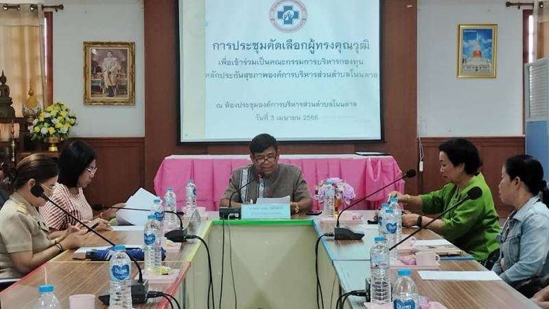 นายคฑาเทพ วดีศิริศักดิ์ นายก อบต.โนนตาล /ประธานกองทุน ฯ ประชุมกองทุนฯ ในการคัดเลือกผู้ทรงคุณวุฒิ เพื่อเข้าเป็นคณะกรรมการบริหารกองทุนฯ ปีงบประมาณ 2566