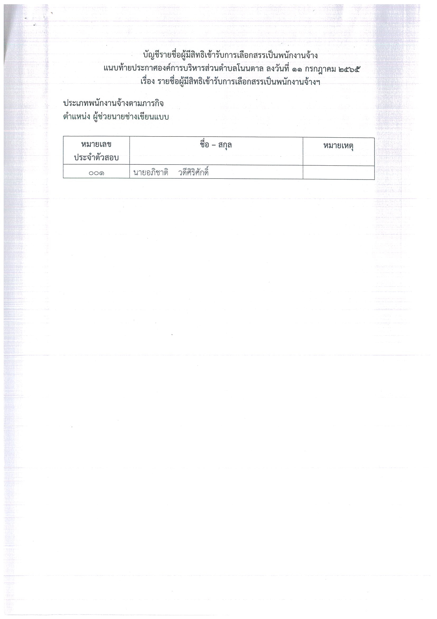 ประกาศรายชื่อผู้มีสิทธิ์เข้ารับการสรรหาและเลือกสรรเป็นพนักงานจ้างตำแหน่ง ผู้ช่วยนายช่างเขียนแบบ