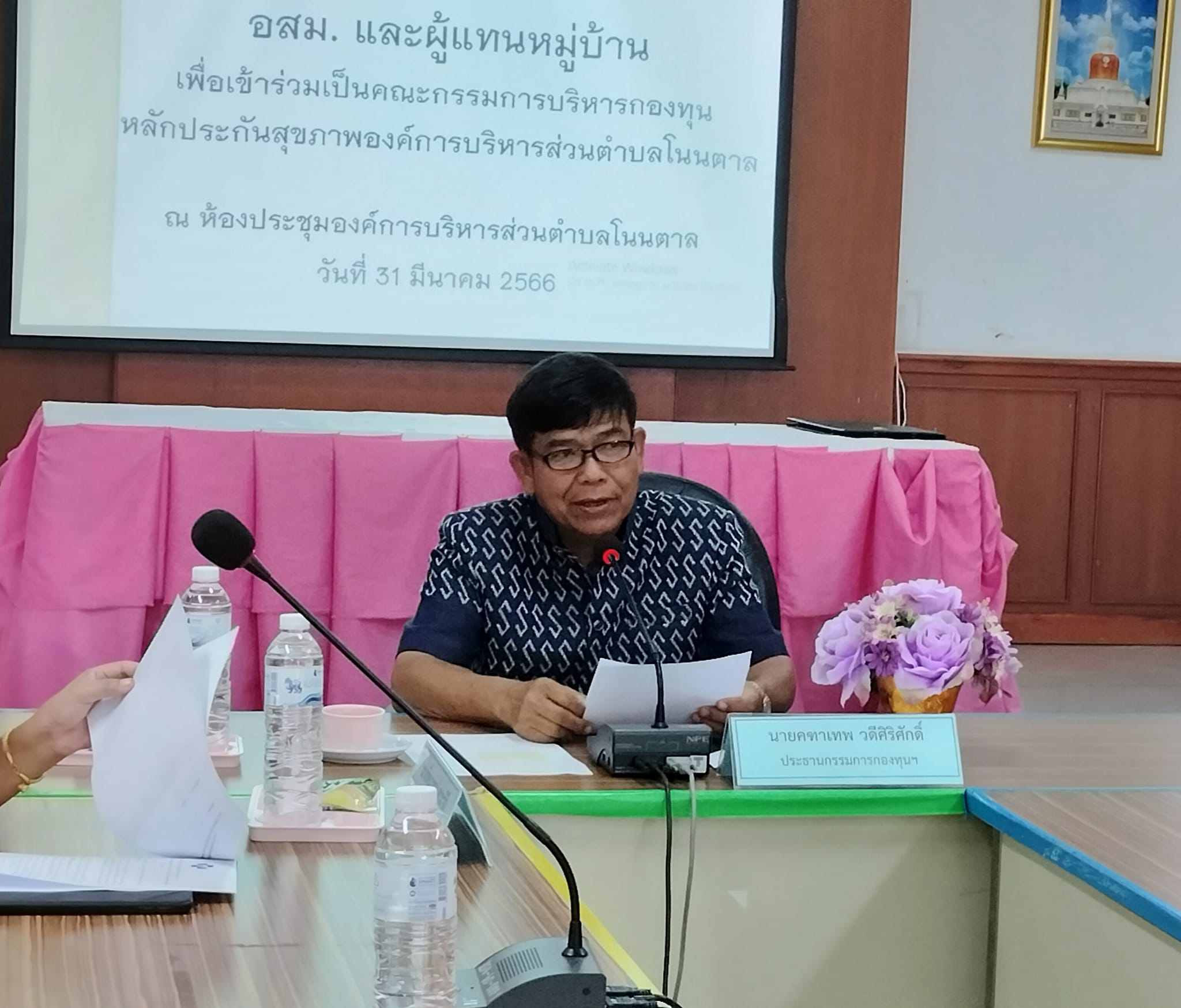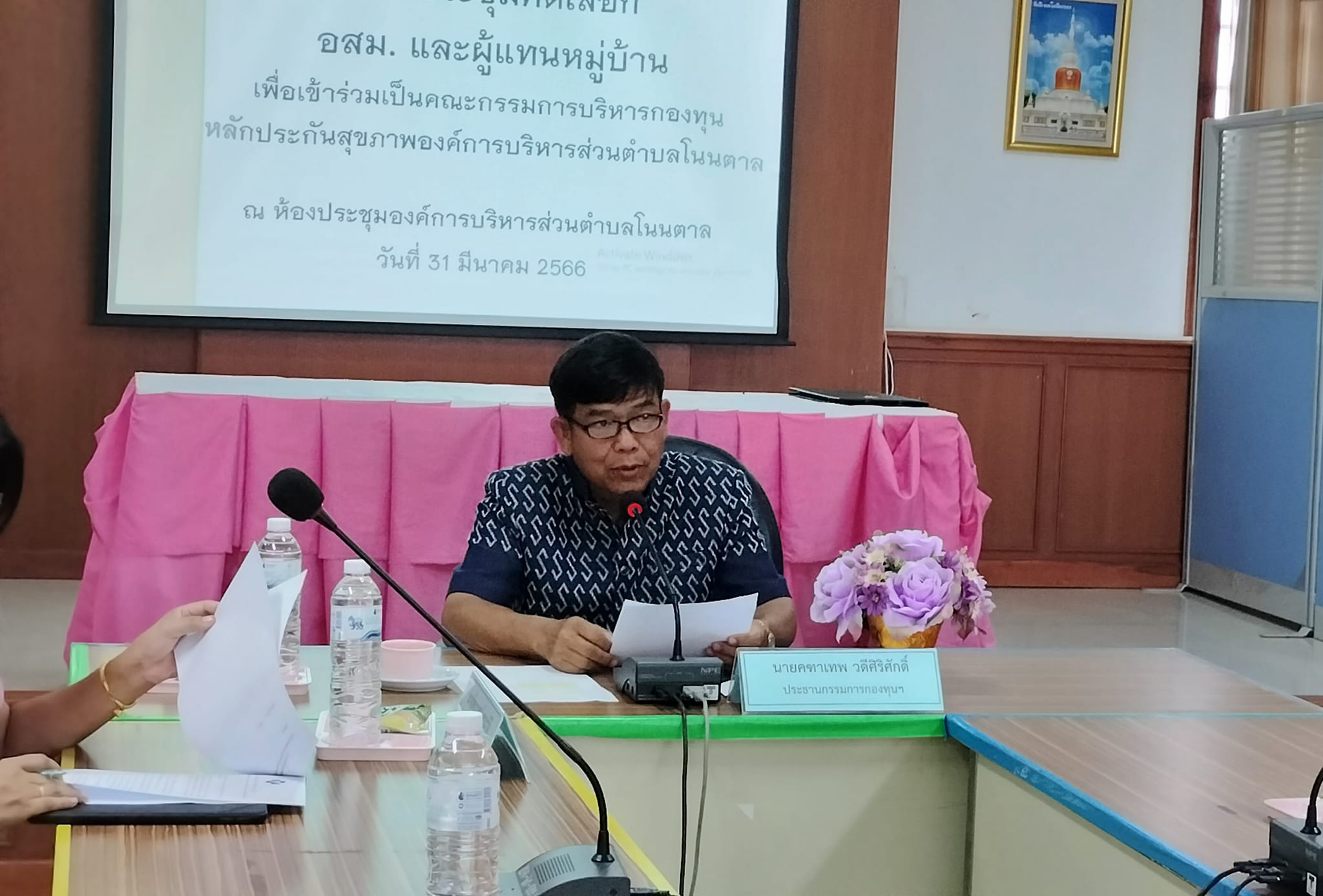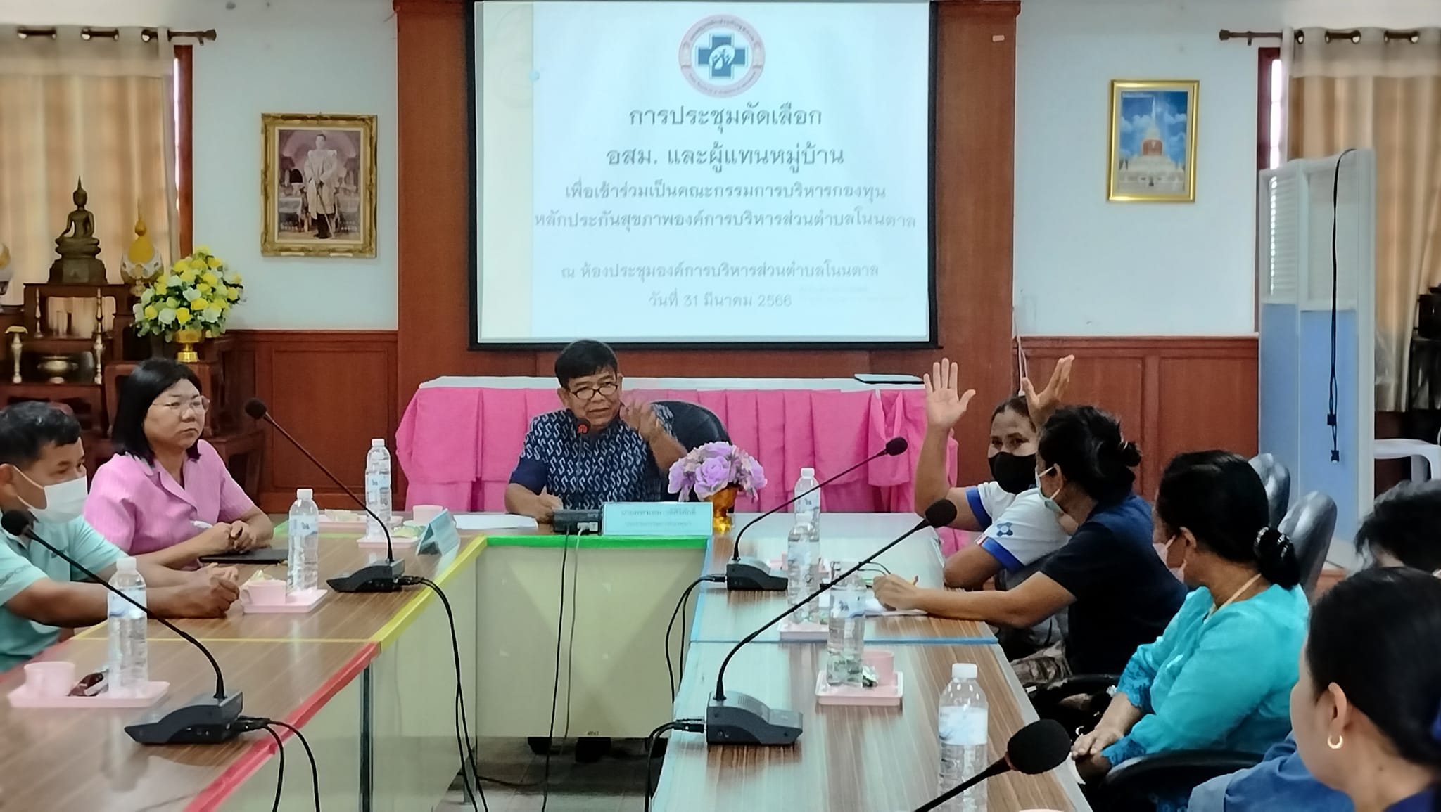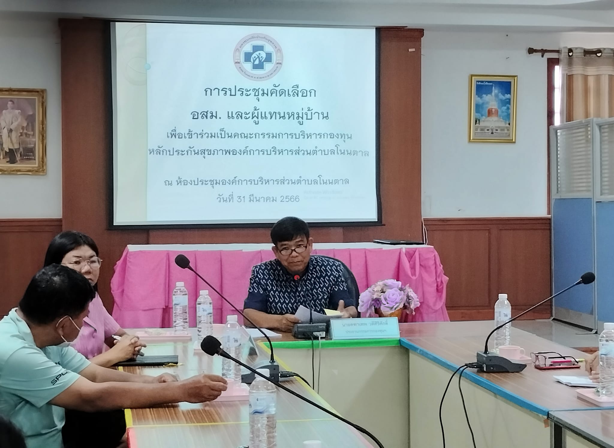 31 มีนาคม 2566 เวลา 13.30 น. นายคฑาเทพ วดีศิริศักดิ์ นายก อบต.โนนตาล /ประธานกองทุนหลักประกันสุขภาพตำบลโนนตาล ประชุมกองทุนฯ ในการคัดเลือก อสม.และผู้แทนหมู่บ้าน เพื่อเข้าเป็นคณะกรรมการบริหารกองทุน ฯ ปีงบประมาณ 2566 ณ ห้องประชุมองค์การบริการส่วนตำบลโนนตาล