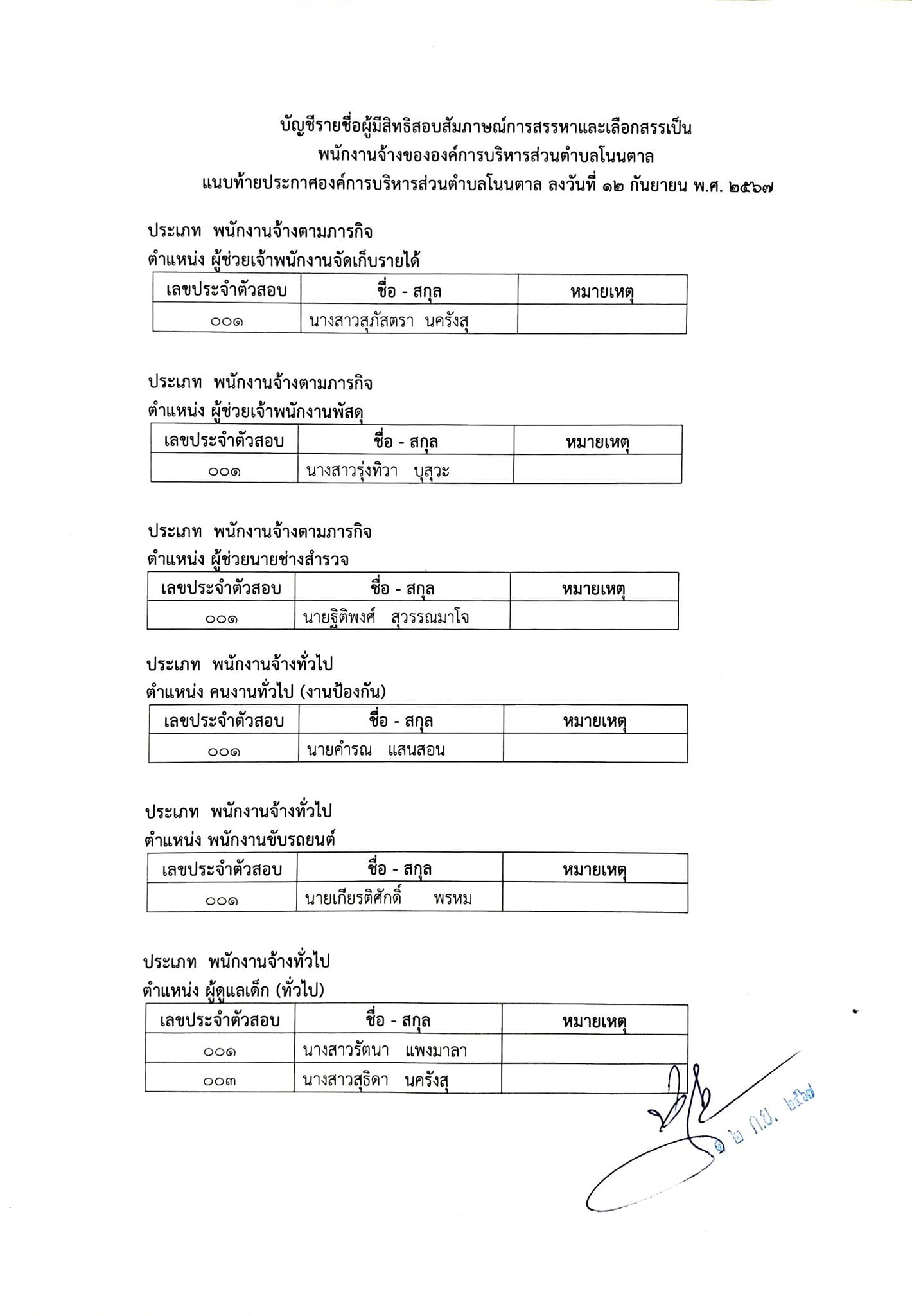 #ประกาศรายชื่อผู้มีสิทธิ์สอบสัมภาษณ์ในการเลือกสรรและเลือกสรรเป็นพนักงานจ้าง ขององค์การบริหารส่วนตำบลโนนตาล