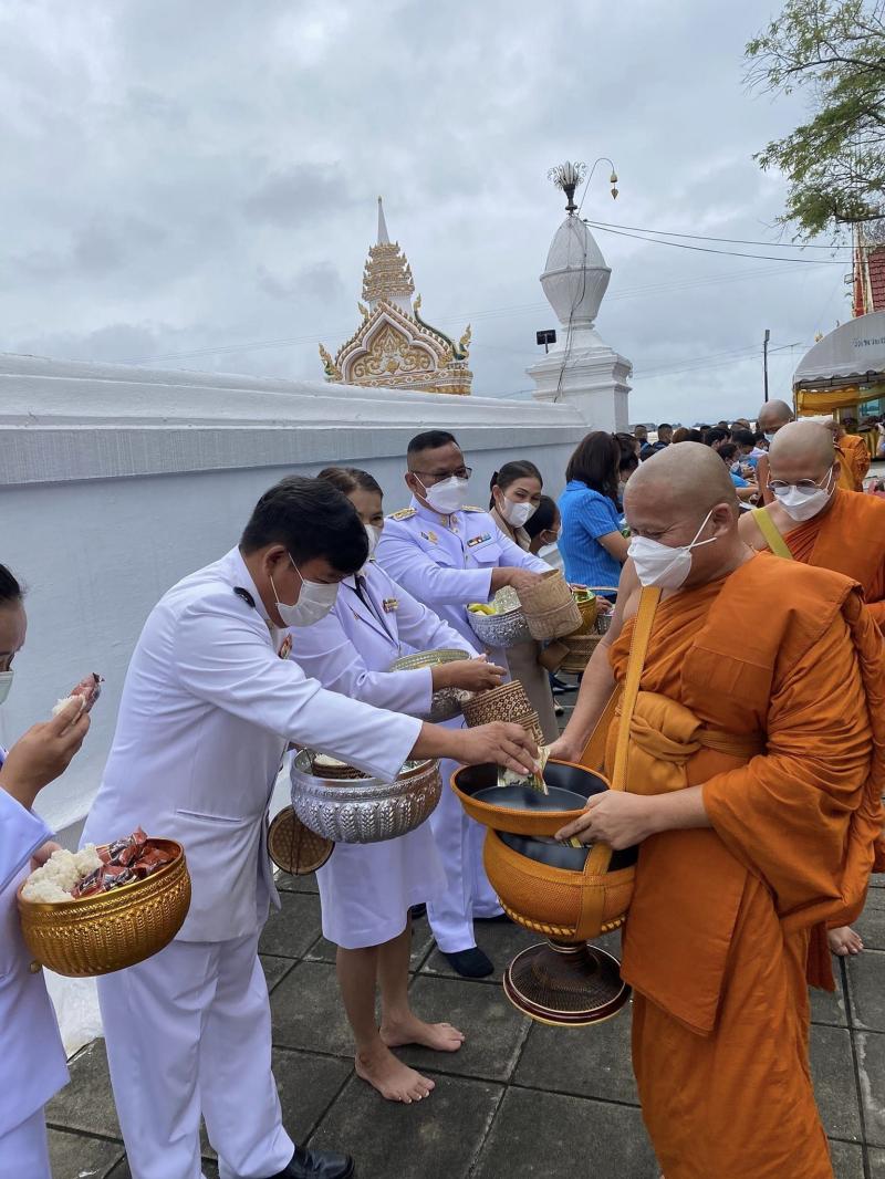 ทำบุญตักบาตรถวายพระราชกุศลณศาลาการเปรียญวัดพระธาตุท่าอุเทน เนื่องในโอกาสวันเฉลิมพระเกียรติสมเด็จพระนางเจ้าสิริกิติ์พระบรมราชินีนาถพระบรมราชชนนีพันปีหลวง ในวันที่ 12 สิงหาคม 2565