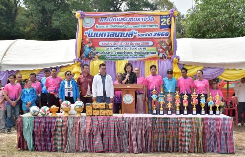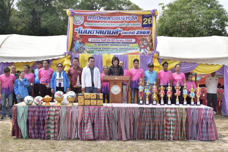 21 มีนาคม 2569 #โนนตาลเกมส์ #ครั้งที่26 ดร.มนพร เจริญศรี สมาชิกสภาผู้แทนราษฎร นครพนม เขต 2 เป็นประธานในพิธีเปิดการแข่งขันกีฬาประชาชนต้านยาเสพติด "โนนตาลเกมส์" ครั้งที่ 26 ณ สนามกีฬาโรงเรียนบ้านธาตุ