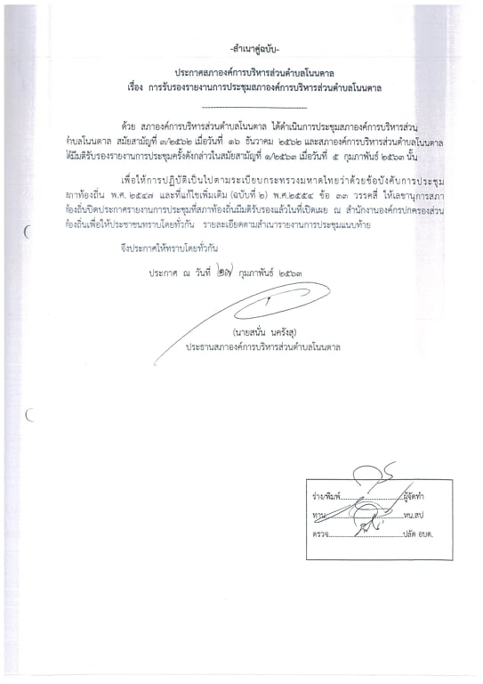 การรับรองรายงานการประชุมสภาองค์การบริหารส่วนตำบลโนนตาล สมัยสามัญที่ 3/ 2562