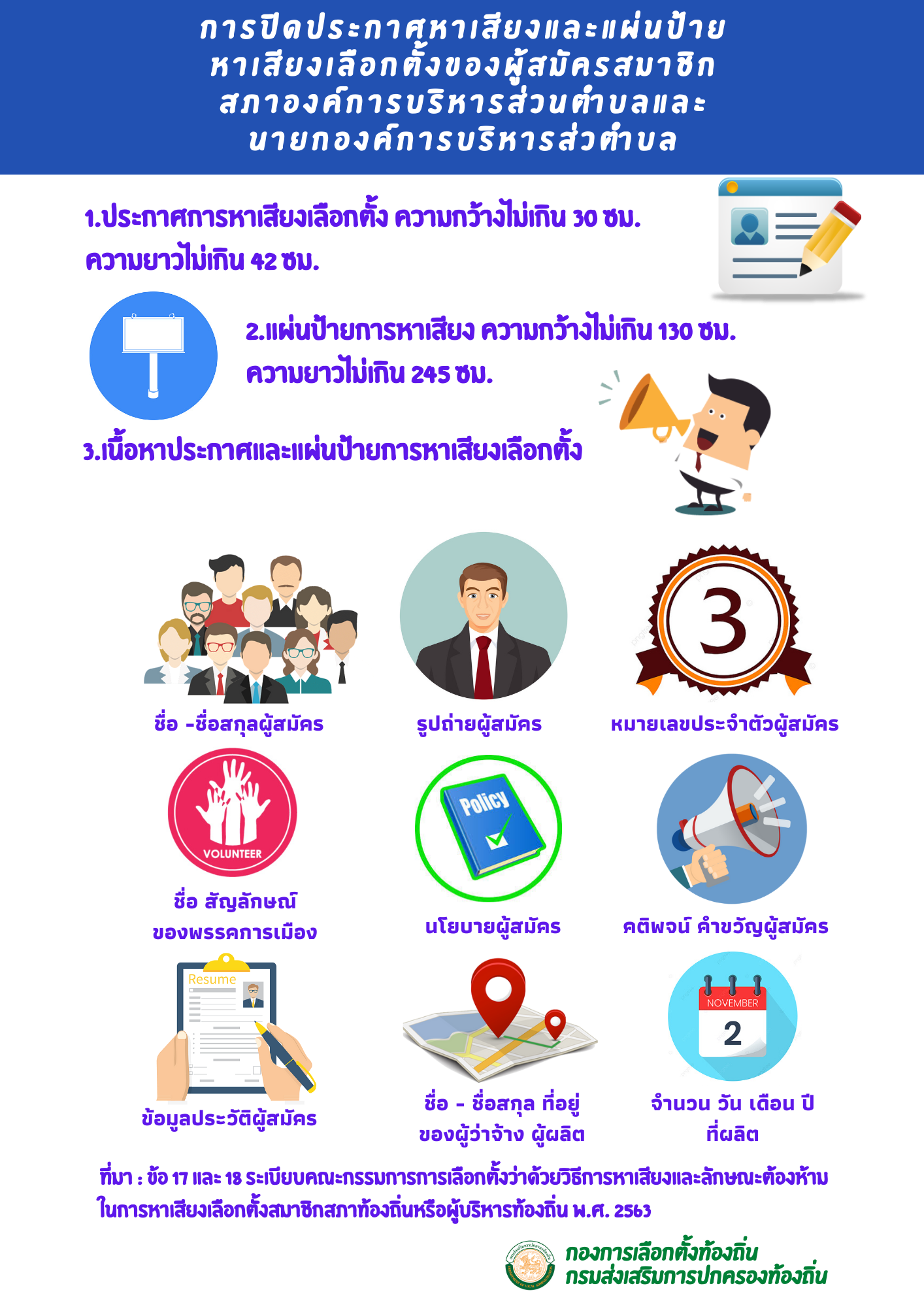 การปิดประกาศหาเสียงและแผ่นป้ายหาเสียงเลือกตั้งของผู้สมัครสมาชิกสภาองค์การบริหารส่วนตำบลและนายกองค์การบริหารส่วนตำบล